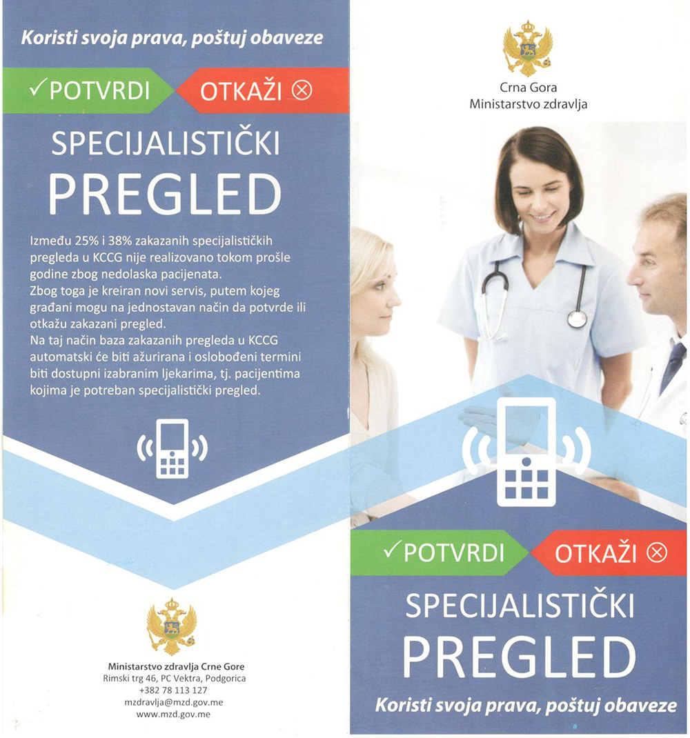Novi servis Call centar za potvrdu/otkazivanje specijalističkih pregleda u Kliničkom centru Crne Gore , kojim će se baza automatski ažurirati a oslobođeni termini biti dostupni izabranim ljekarima i pacijentima.